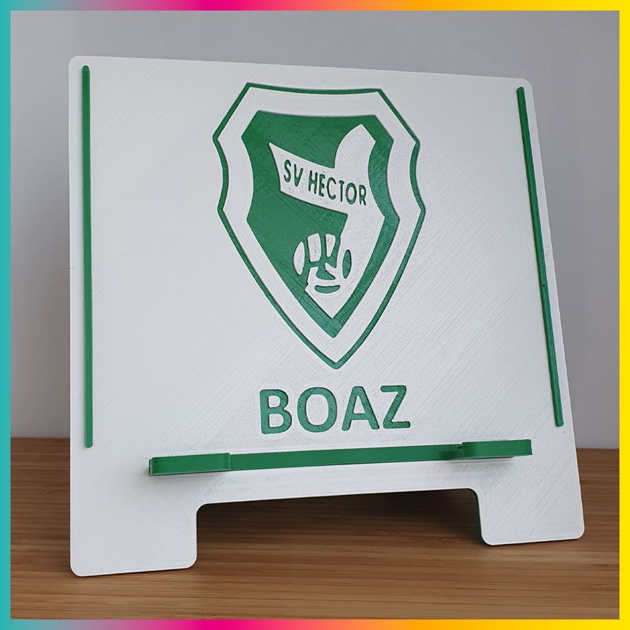 Maak je een 3D Kado telefoon- of tabletstandaard nog specialer door deze te personaliseren met jullie clublogo. Een prachtig item voor de club, of als attent cadeau voor vrijwilligers of andere verenigingen.